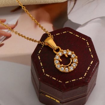 18K Gold Plated Stainless Steel Cubic Zircon Smile Pendant Necklace